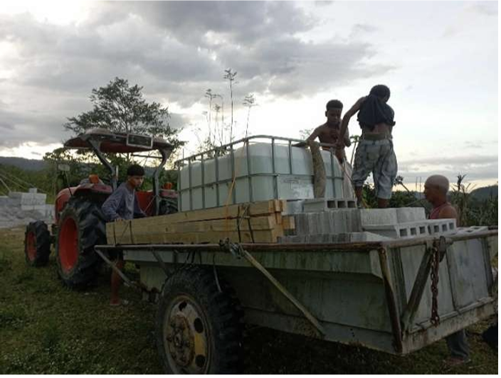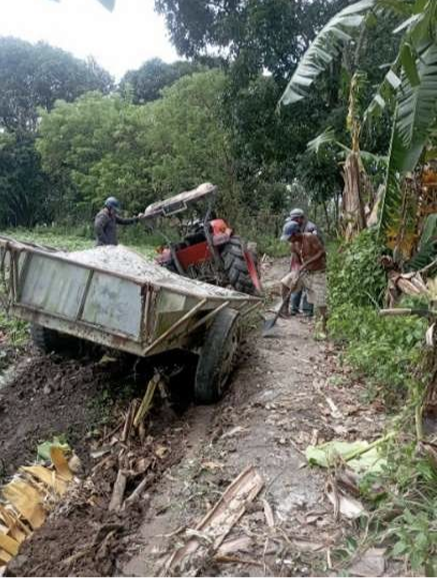 The road going to the town (sitio) of Balaraw was severely damaged from the recent typhoon. Therefore, Jelo hired carabaos, several kolong kolong and a tractor to deliver the deliver the materials to the village.